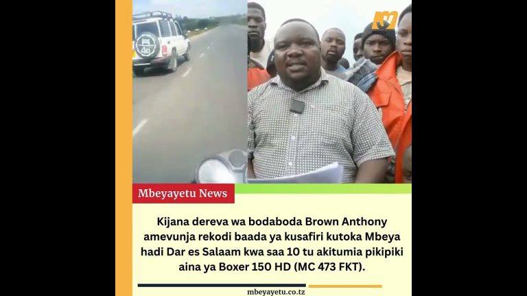 Kijana dereva wa bodaboda Brown Anthony amevunja rekodi baada ya kusafiri kutoka Mbeya hadi Dar es Salaam kwa saa 10 tu akitumia pikipiki aina ya Boxer 150 HD (MC 473 FKT).